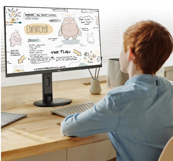 这款HKC S24 PRO显示器采用三边超窄边框设计,16:9比例,屏占比高达92%,分辨率1920*1080,配合IPS面板,呈现全面屏般的广阔视野,用起来沉浸感更强,不会左望右望,让我的专注力也更加强。