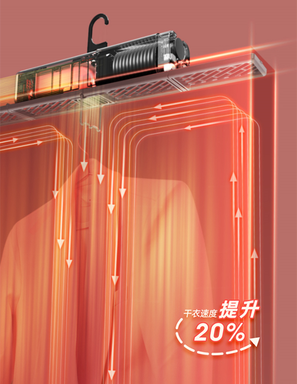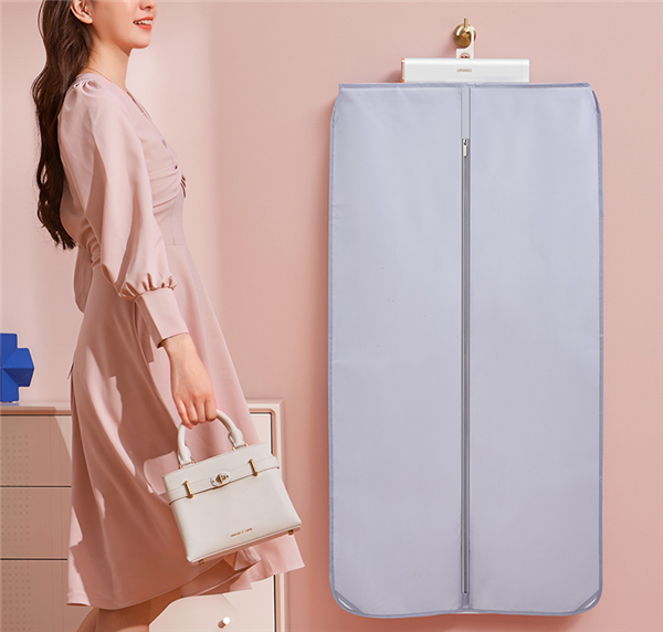 衣罩支架是可折叠设计,收起后跟干衣机长度一致,折叠展开后长度刚好和干衣袋宽度一致,可以撑开干衣袋,提升空间的同时也可以让烘干过程的热气循环会更均匀,干衣效果也更好。