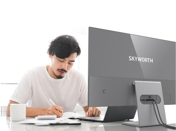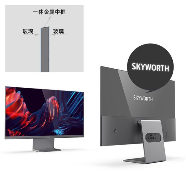 创维F27B40Q在用料方面也比较讲究,我们知道普通显示器几乎清一色采用了塑料外壳,虽然有助于塑形和节约成本,但是质感始终差点意思。它还加入了一体式金属中框设计,配合航空级铝材和无缝弯折以及阳极氧化处理工艺,让外观更有质感。此外,创维F27B40Q还采用了玻璃背板,这不仅在千元级显示器中罕见,在中高端产品上应用得也较少。另外,显示器背板上还加入了可发光的“SKYWORTH”英文Logo,让外观看上去颇具格调。