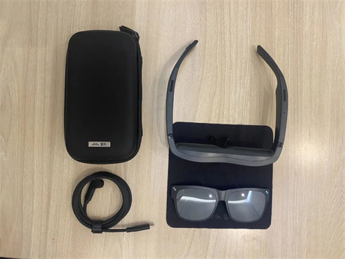 首先开箱来看,产品包装中,除眼镜本体以及说明书外,还附带了一个磁吸式前挡镜片、一条磁吸式数据线、一块清洁布、以及一个眼镜盒。