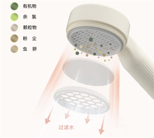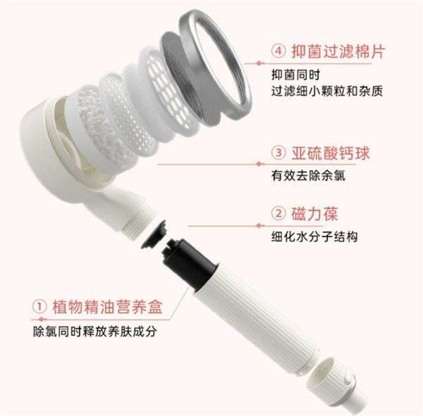 4、过滤棉片不但能有效抑制水中95%的常见细菌(白色念珠菌、大肠杆菌和金黄色葡萄球菌),而且还能过滤水中的重金属以及其他的微小的颗粒跟杂质,避免皮肤收到细菌跟重金属的伤害,全方位的呵护肌肤健康。