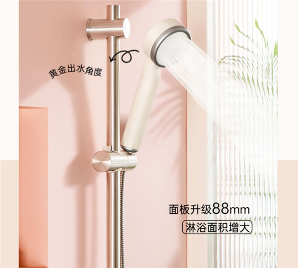 除了大直径淋浴以外,还根据人体工程学采用黄金出水角度,个性化角度的设计,符合大众的需求,在使用的过程中舒适感倍增。