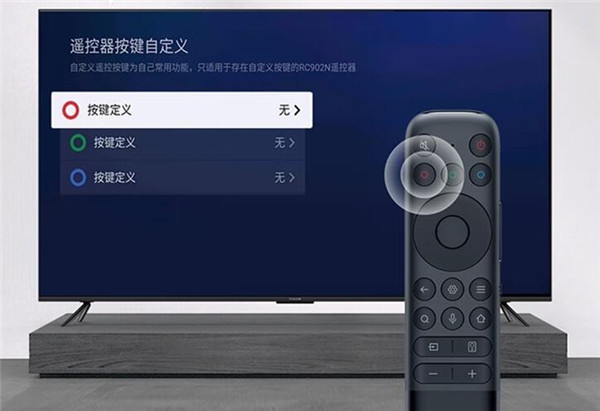 另外要说的是遥控器,功能上最大的特点就是按键的增多,正面除了一些功能按键的增加外,最大的特点就是新增三组可以自定义的自定义功能键,通过设定可以直接切换到一些常用的APP或者其他功能选项上。