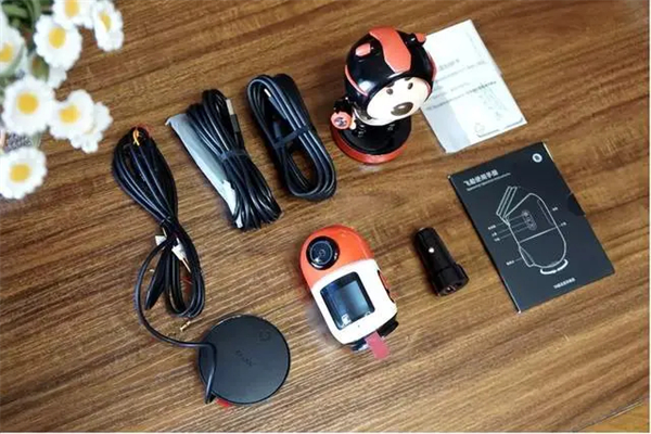 旁边这个红白相间圆润家伙就是记录仪的主机,其实这款记录仪其实还有黑灰款,不过对于我的五菱MINI来说,红白色明显要更搭一些,这也是我选择这款记录仪的主要原因之一。