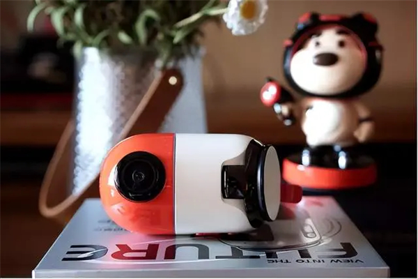 再来简单地看一下70迈云台记录仪的外观,它给我的感觉看上去有点像太空舱,上半身红色的区域主要的摄像头和扬声器,由于支持云台控制,所以用手是可以旋转扭动的。