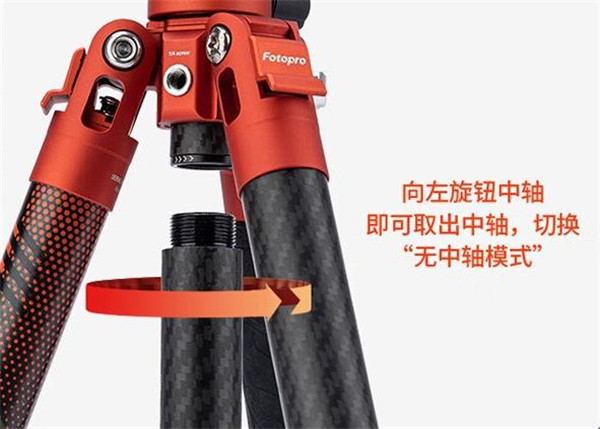 它的称重可以达到5kg,日常站立拍摄,可以将中轴抽出增加拍摄高度,细心的小伙伴还能发现它的中轴居然也是可拆卸设计的,也就是说你需要极低机位拍摄的时候,可以把中轴拆下来,变身为无中轴模式。