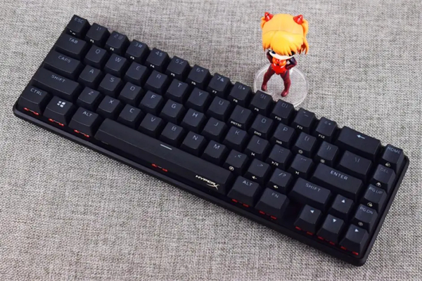 HyperX起源65键盘使用全黑机身配色+悬浮式轴体设计,67键65%配列布局相当紧凑小巧,其中F1~F12以及各式功能键都通过FN组合键来实现;键盘机身采用通体航空铝合金,而边角部分则沿用起源系列键盘的圆润风格,键盘拿在手上很有分量。