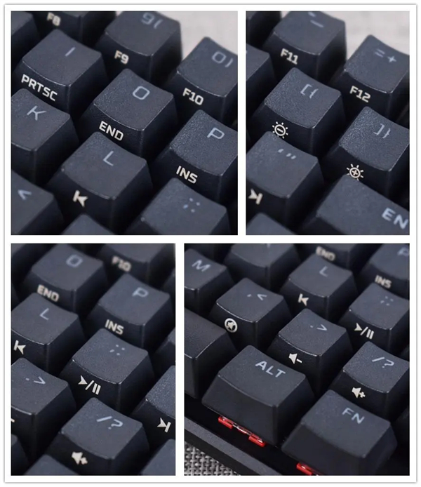 作为紧凑型配列,HyperX起源65的FN组合功能键除了基本的F1~F12、~、PGUP/PGDN等功能区外,还带有多媒体播放功能、灯效亮度调整、音量大小调整以及游戏模式开关,对应功能可以通过键帽侧刻信息了解,在功能上比较齐全,相比传统的87布局和104布局,上手需要一点学习时间;值得一提的是,键盘本身支持3个自定义设置档,玩家可以快速切换设置档来面对不同的游戏场景。