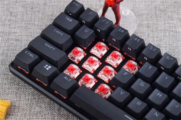 在原配主题键帽方面,相比起源60的水波纹主题,HyperX起源65附赠的主题键帽为UFO飞碟和星球主题,键帽颜色会根据轴体版本而有所不同,火轴对应红色;另外,主题键帽材质为ABS。
