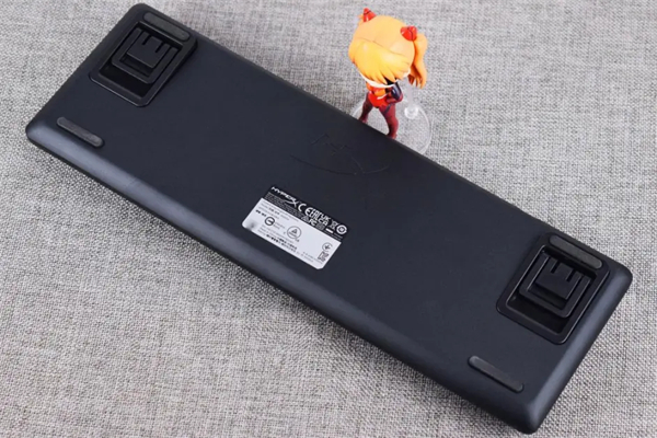 来到键盘背面,HyperX起源65使用可拆卸线材,连接口为常见的C口;键盘底部自带四枚橡胶防滑垫,键盘托架部分则采用三段式设计,支持三种不同的键盘高度,以满足不同玩家的高度需求。