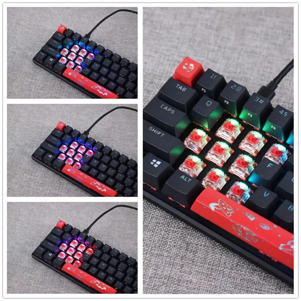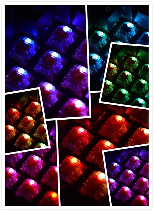 管家这次入手的HyperX起源65使用HyperX自主的线性火轴,其具体参数为触发行程1.8mm+按键行程3.8mm+触发弹力45g,手感上对标樱桃红轴/银轴,手感干净利落且直上直下,没有落段感;而轴体外框采用透明材质,在RGB透光方面表现突出;在大键部分,HyperX起源65使用卫星轴设计。