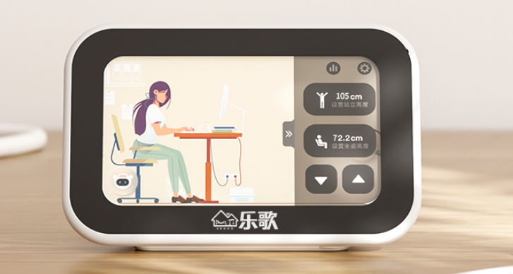 这玩意儿甚至可以和手机进行语音通话,只需要乐歌的APP,不需要微信。本质上,这个智慧屏就是一个搭载安卓的智能音箱,后续可升级性也非常的足。乐歌iE5的智慧屏就会提醒你变换姿势。先伸个懒腰,活动一下筋骨,智慧屏上轻轻一按(吼一嗓子也行),从坐姿变成站姿,站立办公也非常舒服。