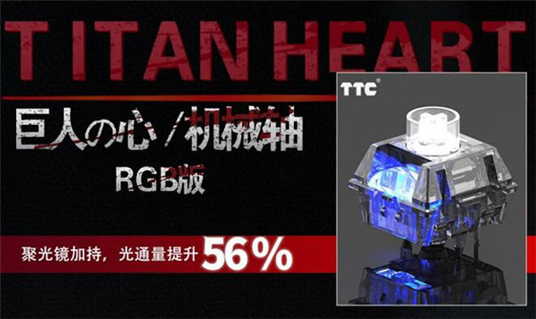 轴体需要特别一提。御斧L75 搭载的 TTC 高端轴 ~ 巨人之心 ,灵感来源动漫“进击的巨人”。全黑透外壳代表阴霾的天空,红色透明轴心指代黑暗中坚持初心不变,工艺采用了 TTC 专利乐高式结构,轴心底座可自由拆卸,和之前的爱心轴一脉相承,也让后期选择多了以后自由搭配色彩称为可能。
