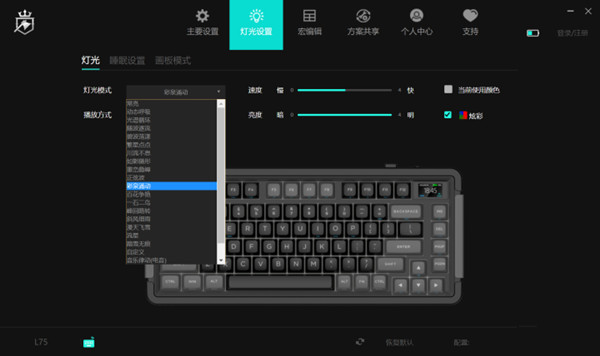 利用御斧专门定制的驱动,可以对键盘实现按键自定义以及各种灯光显示。
