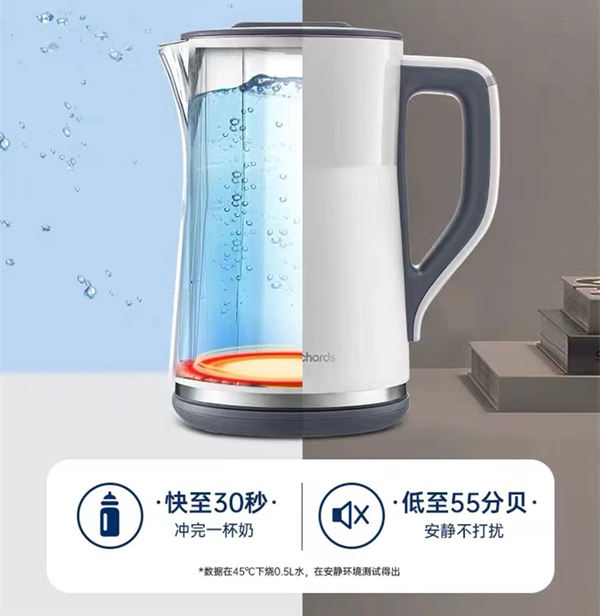 摩飞恒温电热水壶MR6070在使用细节方面的设计也十分贴心,它采用低分贝静音烧水,不打扰工作和生活,在繁忙中独享一份静谧;