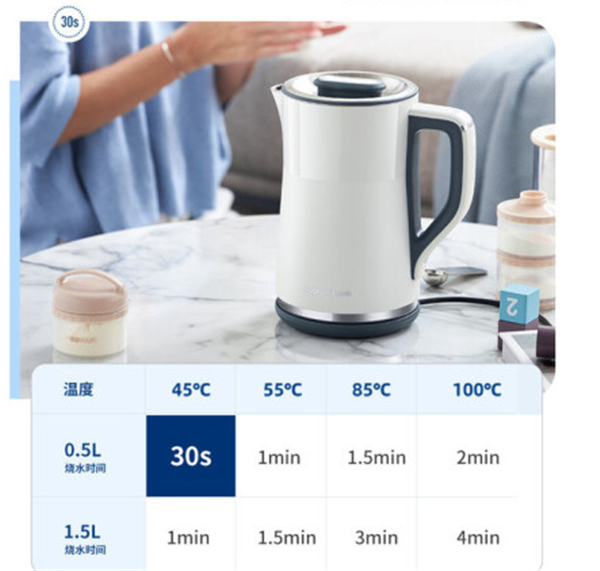 摩飞恒温电热水壶MR6070采用1800W大功率,底部加厚盘式发热更均匀,烧水更迅速,有了它,新手爸妈不仅能1分钟冲好1杯奶、带娃更省心,上班族早餐冲燕麦片也能节省更多时间,居家待客泡茶也无需久等,让日常饮水更高效;烧开后能自动保温30分钟,随饮随取自由续杯,让生活更有温度。