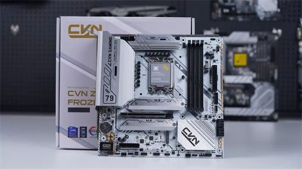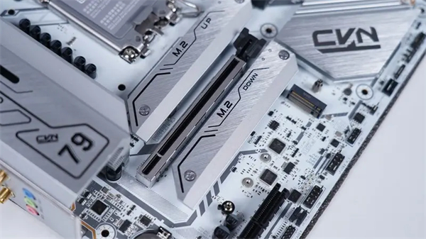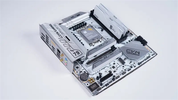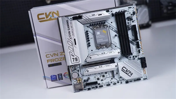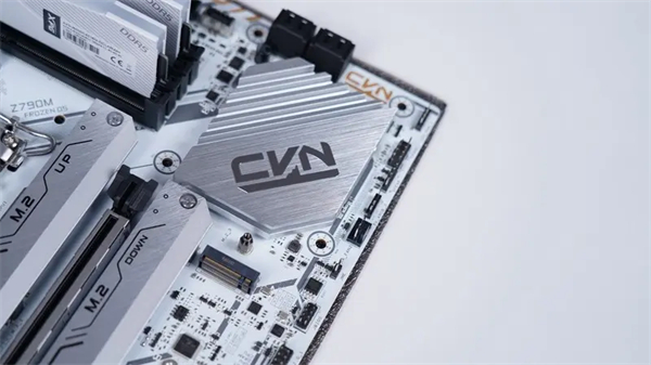 从外观来看,七彩虹 CVN Z790M FROZEN D5 V20 战列舰 DDR5使用的是全白色的PCB设计,并搭配有银色的散热,用来装全白配色主机非常合适。