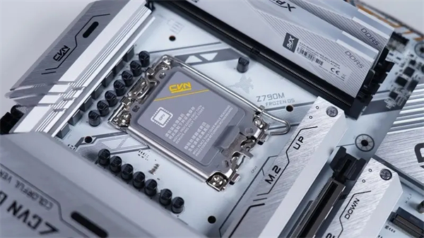 由于13代的CPU接口仍然是LGA1700.所以七彩虹 CVN Z790M FROZEN D5 V20 战列舰 DDR5可以同时支持12代和13代主板,老平台可以灵活升级过渡。至于供电方面,12+1相的 DrMos 供电和硕大的一体式I/O供电散热片也是可以满足到酷睿i7-13700K的游戏和超频需求。