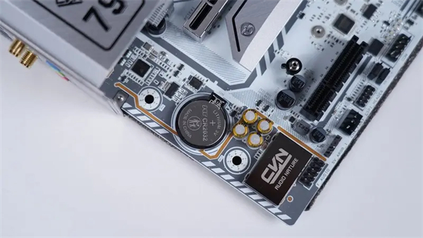 在集成声卡这边,七彩虹 CVN Z790M FROZEN D5 V20 战列舰 DDR5给声卡芯片加上了独立的屏蔽罩、音频分割线以及音频专用电容,音质表现纯净动听。