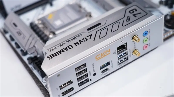 接口方面,七彩虹 CVN Z790M FROZEN D5 V20 战列舰 DDR5的配备可以说是相当丰富,上面有一个DP 1.2、一个HDMI 2.0、四个USB 2.0、两个USB 3.2 Gen1、一个USB 3.2 Gen2、一个USB 3.2 Gen Type-C和2.5G的网卡接口。