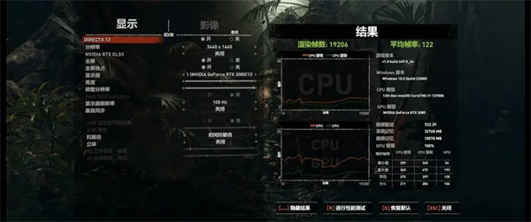 接着是游戏测试《古墓丽影:暗影》,特效全高4K分辨率关闭DLSS的设置下,这套平台跑出了122FPS的平均帧率。