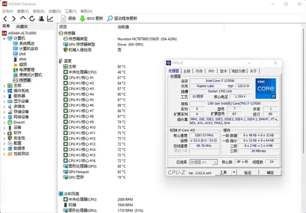 首先是CPU方面,全新的酷睿i7-13700K,依旧是性能P核+能效E核的混合架构,它搭载了8颗性能核+8颗能效核,线程数为24条,最大睿频达5.3GHz,并内建30MB 的 L3和 24MB L2高速缓存,内存频率可支持DDR5-5600MHz/DDR4-3200MHz,可兼容上一代600系主板,总体规格要比上一代提升不少,性价比也是非常高。