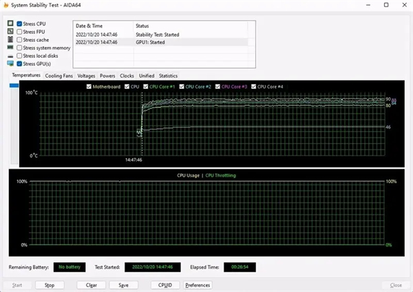 CPU和GPU双烤的TDP最高峰值可达649W左右,在拷机26分钟后,CPU的满载温度87度,在显卡温度这边,Furmark拷机接近15分钟之后,核心温度为69.5℃,散热表现优异。