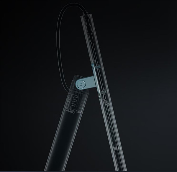 米家台灯1S 耀夜黑采用了一段可折叠式设计,不占空间,尽显极简风格。折叠连接处采用了极具科技感的编织线作为点缀,高强度纤维素尼龙线、跳色染色工艺,加上使用了48锭32目的超精细编织手法,展现了材料与技艺的魅力。