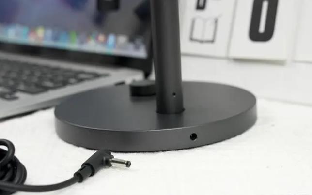 台灯的电源接口则设计在了底座的边缘处。底座除了依靠配重保持稳定性之外,还增加了一圈橡胶垫来防滑。