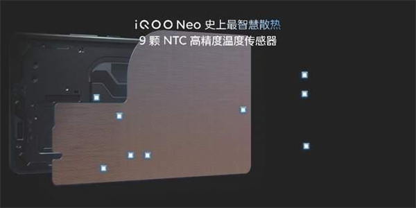 让出众更出彩,天玑9000+的功耗控制本已足够惊艳,iQOO再为Neo7带来Neo系列史上最强的智能散热系统,通过9 颗覆盖全机身的 NTC 高精度温度传感器,实时监测手机温度状态,智慧调整散热策略;配备Neo系列史上面积最大的4013mm2 VC均热板,充分覆盖发热区域,VC内部毛细结构由1283根铜丝编织而成,散热速度飞快。智能散热系统拥有超强散热实力,助力Neo7实力尽兴全开,冷静持久发挥。
