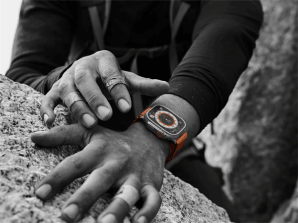 不过也跟以往不同的是,苹果带来了 Apple Watch Ultra,该款手表的表壳采用航空级钛金属材质,表径 49mm,左侧增加了新的操作按钮,表冠凹槽更突出,多了第二个扬声器和 3 麦克风,支持夜间模式等,在功能上集成实时指南针、L1+L5 双频 GPS、更专业的跑步监测、防水性能提高一倍到 WR100、内置 86dB 警报系统、潜水 EN 13319 认证。可以说是苹果在手表上进行了一个较大的突破,相比另外两款手表屏幕更大、更亮、机身也更坚固,同时扬声器和麦克风都更多、电池续航也更长。
