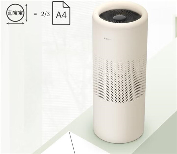 LIFAair加湿器沿用了LIFAair 惯用的北欧风格,偏米黄色机身,圆柱形外观,整体外观高640mm,直径250mm,比一张A4纸还要窄,摆放在屋内一角既美观又不占用过多的空间。