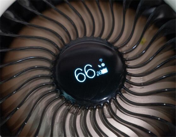 除了通过触控式进行操作外,还可以通过瞬时间触摸控制环而增大风速,逆时针减小风速,风速可通过OLED水滴显示屏查看。如果怕平时误碰的话,也可开启童锁功能。