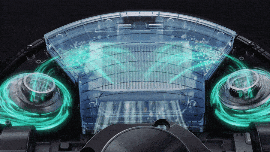 eufy悠飞 X8扫拖一体机器人内置了他们首创性的双风机专利技术,区别于传统的单风机,双风机结构2×2000Pa,增大的不仅是吸力,而更多的是促进空气的流动,空气流量提升大概80%是单风机的两倍,从而能够让类似灰尘、毛发等垃圾碎屑能更大的被卷入风口内,清扫毛发的能力翻倍的同时,毛发清洁不易缠绕。
