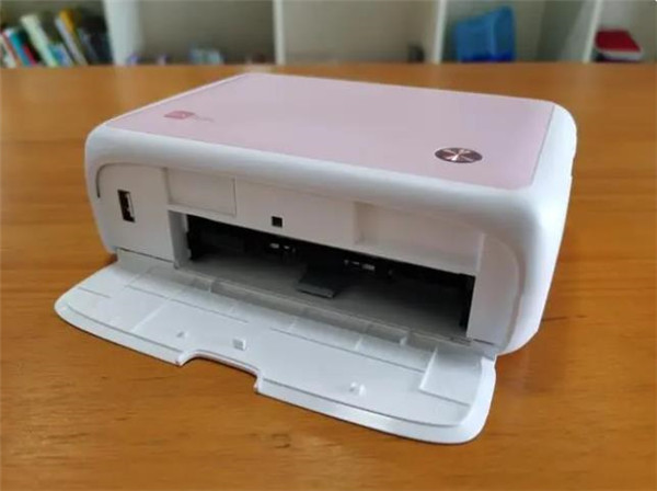 安装过程可以看到机身前面和侧面分别有两个仓门,侧面是色带仓,正面为纸匣仓,都是直接把配件按照正确的方向插入进去然后听到咔嚓一声就完成了,没有任何难度,同时纸匣更换相纸也很简单,打开AB面就可以轻松换纸,打印的时候可以看到这样的设计是为了让空间占用更小。