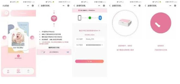 等设备识别之后,可以通过小程序查看功能了,主页可以看到添加设备、制作新相册、一键打印等主要功能选项,通过添加设备可以继续添加至像的打印机产品,通过制作新相册可以为宝宝制作专属风格的相册来记录成长瞬间,一键打印则是自有的选择手机相册内照片提交进行打印。