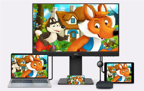 其他方面除了网课,这台显示器还支持投屏(购买时会随机附赠投屏器),无论是手机还是pad,都能共享屏幕。
