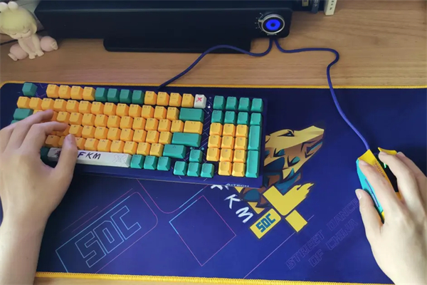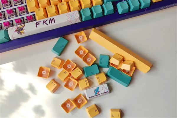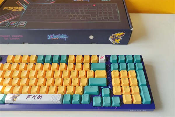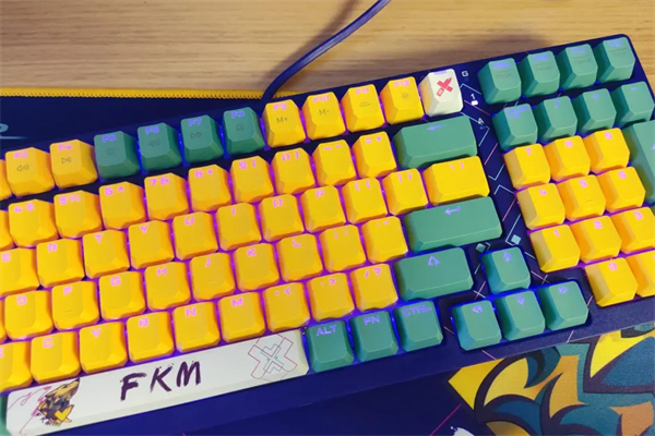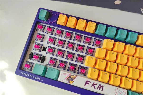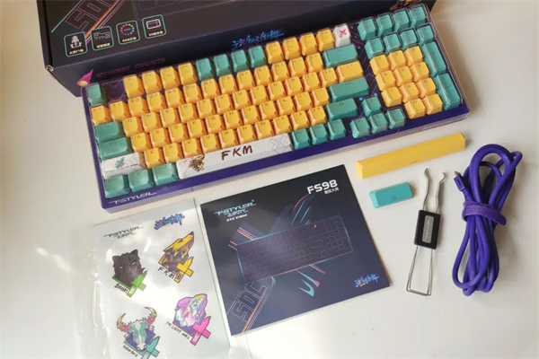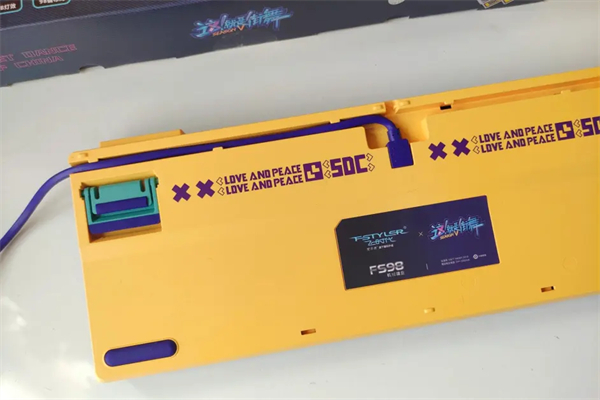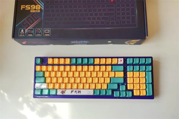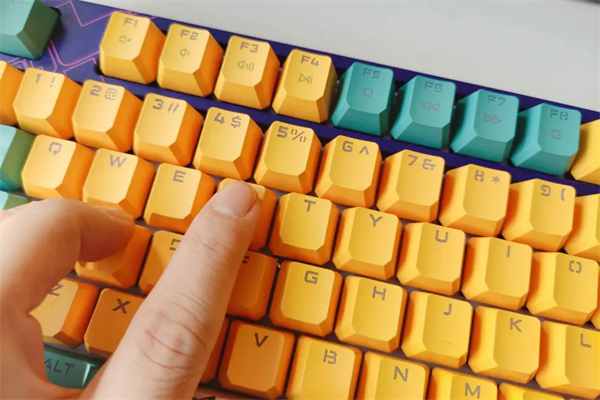 键盘的配色非常漂亮,明亮的黄色键帽,很有视觉冲击感。98键,全键无冲,整体线条简洁,初次接触手感还算不错。