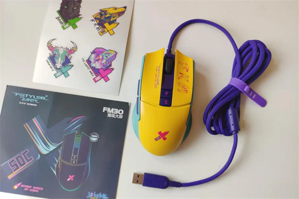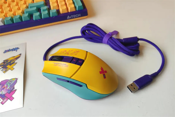 双飞燕飞时代FM30态度大师游戏鼠标,和键盘刚好搭配成一套,鼠标很轻,仅仅只有78g,亮丽的黄色使这款鼠标非常抢眼。