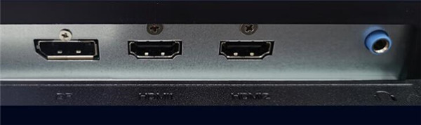 接口方面,丰富连接,激活电竞体验,HDMI与DP接口支持,适配各种设备连接。依次有:DP1.2x 1、HDMI2.0 X 2、音频接口、电源接口。