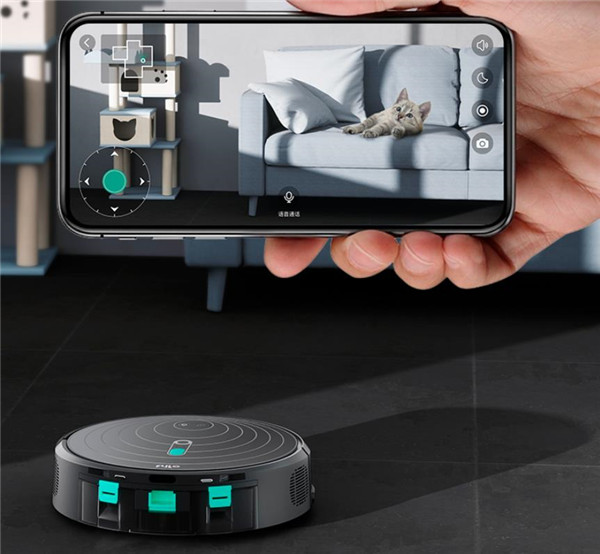这款机器人自带1080P HDR高清摄像头,通过摄像头我们可以实现远程视频监控功能,不管是白天还是夜晚,都可以随时查看家里的情况,特别是有宠物的家庭,更是可以通过摄像头和宠物进行远程互动。