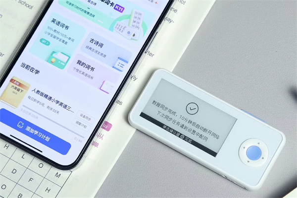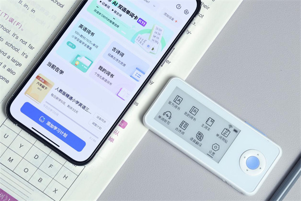 如布AI双语单词卡K11支持无线网络和手机APP协同,在不同的学习阶段,我们只需要在手机上选择适用的教材或者词书,然后同步到如布AI双语单词卡K11上就可以了,很方便。