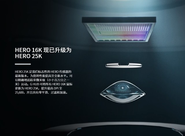 罗技G502 X还搭载了罗技最新的HERO 25K高精度游戏传感器,可以精确地追踪亚微米级(小于百万分之一米)运动,拥有出色的响应性和精准度,这让罗技G502 X获得了最高25600的DPI。值得一提的是,HERO 25K也拥有出色的功耗表现,能源效率是前代的10倍,但这次我们评测的是有线版,这里的功耗体验不到。此外,罗技G502 X还支持1000Hz的回报率,符合一款游戏鼠标的定位。