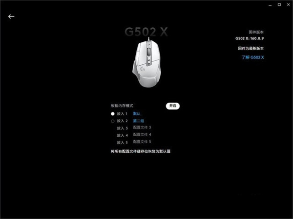 罗技G502 X支持板载内存存储配置文件,将设置好的快捷键文件保存在板载内存后,电脑不打开G HUB仍然可以用设置好的快捷功能。