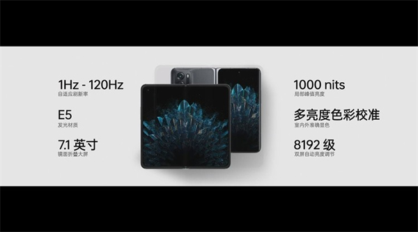所以说相较于普通的手机,Find N所提升的功耗基本来自于这块7.1英寸的内屏,并且这块内屏也是我们最常用的一块屏幕。而为了降低这块内屏所带来的功耗上的变化,OPPO在Find N的内屏上用上了三星E5发光材料以及LTPO技术。