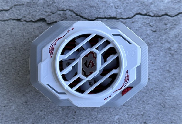 具体来看,黑鲨冰封散热背夹3 Pro 凤求凰版的正面采用了双色工艺,将中心的白色部分与外侧的灰色部分无缝衔接在一起。中心的红色黑鲨logo则采用曝光显影+阳极氧化工艺,整体质感出色。外圈使用凯芙拉精雕纹路设计,观感精致。RGB环形灯带穿插其中,视觉效果极具冲击力。