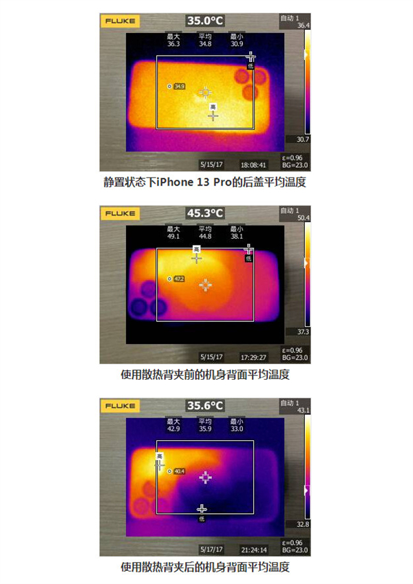 在15分钟游戏后,使用黑鲨冰封散热背夹3 Pro 凤求凰版的iPhone 13 Pro比室温无散热背夹辅助下的裸机后壳平均温度降低了9.7℃,与静置状态下的iPhone 13 Pro相比也仅升温了1.1℃,游戏平均帧率也从46fps提升至58.9fps。可以看到,在散热背夹的帮助下,iPhone不仅游戏帧率更加稳定,机身平均温度也有着明显下降,可以大幅提升用户的游戏体验。