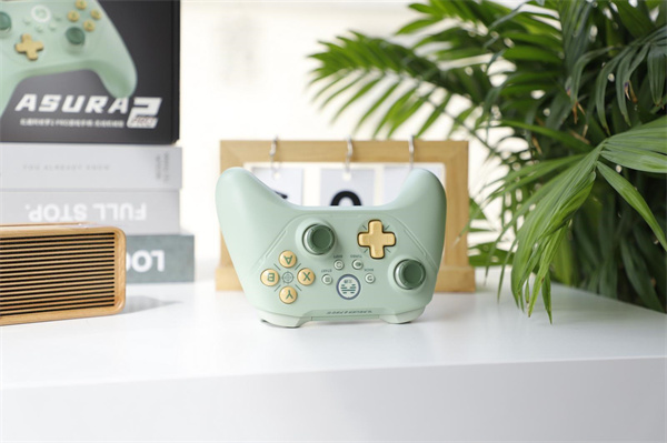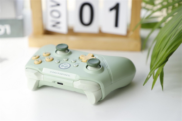 外观上,大胆的牛油果绿色机身和奶黄色按键组合非常漂亮,哪怕对游戏无感的人群看到它也由衷的发出一句感叹:这个手柄颜色真好看!
