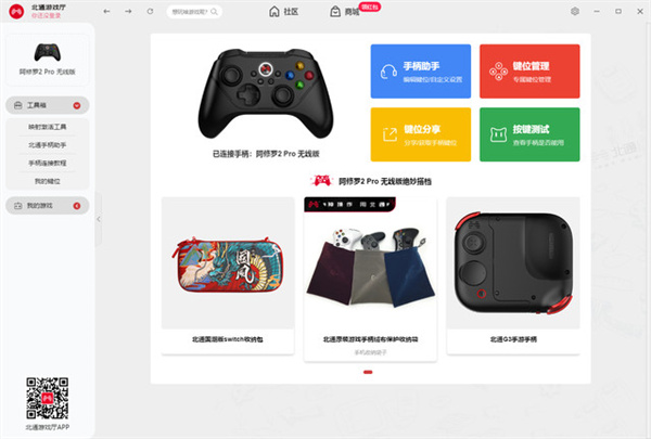 北通提供了一个北通游戏厅软件,可以在软件内部对手柄的各个按键和摇杆进行设置,也支持手柄背后两颗键的自定义宏设置。根据电子说明书指导,下载“北通游戏厅”软件,并进行安装。