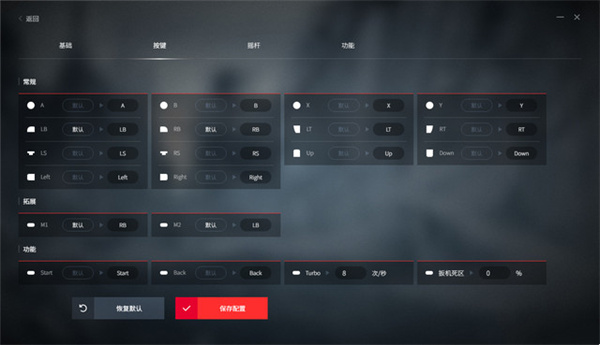 进入设置界面,可以看到手柄的电量,在该界面可以设置各个按键,也可在我的配置中,新增配置来设置,方便日后切换。